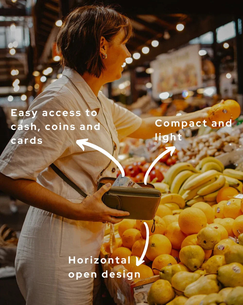 Diseño Compacto y Funcional: Diseñado para la vida cotidiana, este bolso es ideal para contener dinero, llaves, tarjetas de crédito y billetes. Su estructura compacta te permite tener todo al alcance sin desorden.